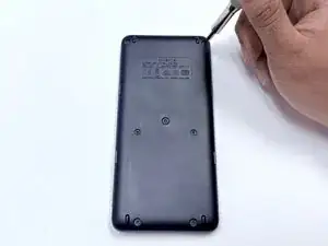 Проведите лопаткой по периметру калькулятора, чтобы освободить зажимы, соединяющие переднюю и заднюю панели.