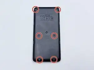 Используйте отвертку Phillips #00, чтобы удалить шесть винтов по 7.5 мм с задней панели.