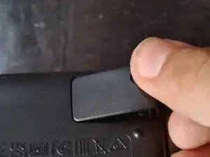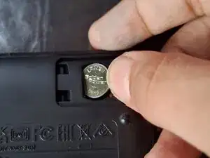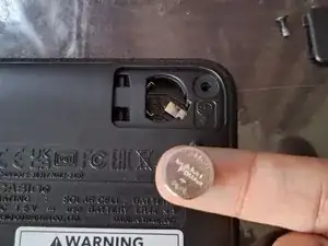 Вставьте новую батарею в калькулятор, сдвинув её на место, а затем нажав вниз, чтобы обеспечить хороший контакт.