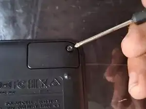 Удалите винт с крестовой головкой, который удерживает крышку батареи в правом верхнем углу.