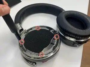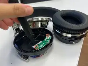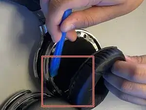 Переверните наушники и используйте инструмент для открытия, чтобы приподнять и снять амбушюр.