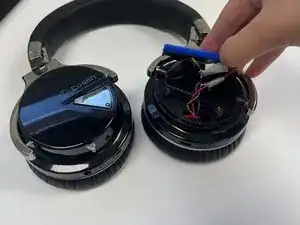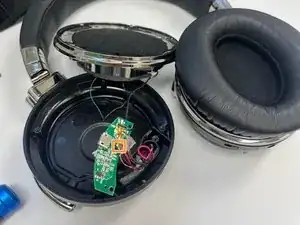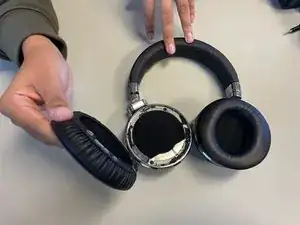 Снимите крышку правого динамика, поддев её руками, от остальной части наушников.