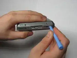 Вставьте пластиковый инструмент для открытия в зазор между передней и задней крышками.