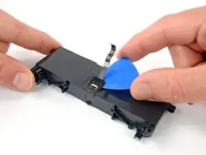 Просуньте остриё медиатора для вскрытия под кабель гибкой батареи, чтобы ослабить клей, фиксирующий его к гарнитуре.