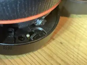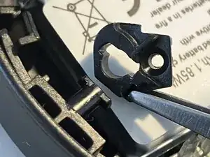 Если в процессе разборки выпала деталь, обведённая красным, вставьте её обратно с помощью пинцета (зенковка для винта должна быть обращена вверх и наружу).