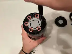 Снимите каждый резиновый торцевой колпак с помощью пластикового лопаточного инструмента.