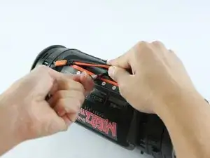 Будьте осторожны, чтобы не повредить небольшой белый ленточный кабель, который соединяет крышку батареи с остальной частью устройства.