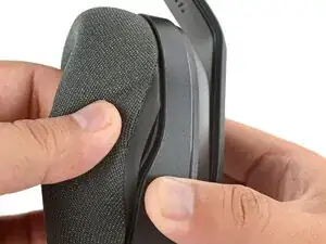 Проверьте периметр наушника, убедившись, что амбушюр надежно установлен. Если какая-либо часть тканевого края выступает, попробуйте задвинуть его на край или снимите амбушюр и попробуйте снова.