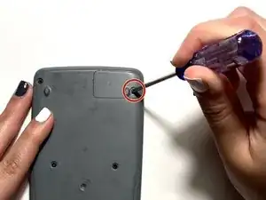 Используйте отвёртку Phillips #0, чтобы снять винт в верхнем правом углу.