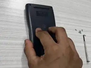 Переверните калькулятор так, чтобы задняя панель была направлена вверх.