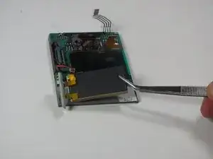 Используя пинцет или лопаточку, подденьте батарею и снимите её с экрана.