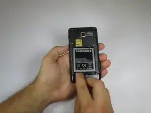 Нажмите пальцем на выемку в нижнем левом углу батареи.