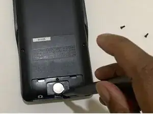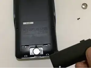 Используйте лопатку, чтобы аккуратно выдавить монетную батарейку через небольшое отверстие под батареей.