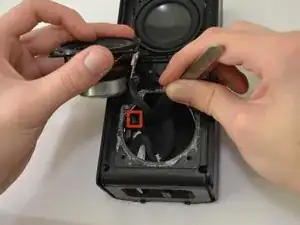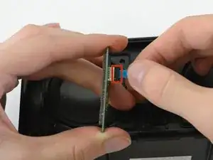 Сильно потяните за конец ленточного кабеля, чтобы отсоединить динамик от материнской платы.