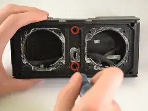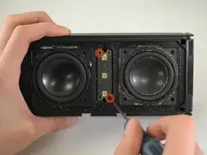 Используя крестовую отвертку #000, отверните четыре крестовых винта 8 мм в каждом углу обеих динамических головок (всего восемь винтов 8 мм).