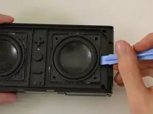 Используя пластиковый монтажный инструмент, подденьте по краям динамика, чтобы ослабить клейкое соединение с передней панелью.
