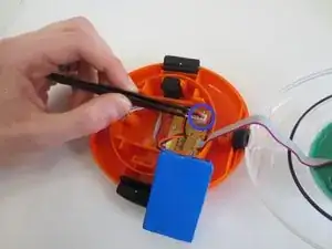 Используйте пинцет, чтобы удалить часть зажима, прикрепленную к батарее.