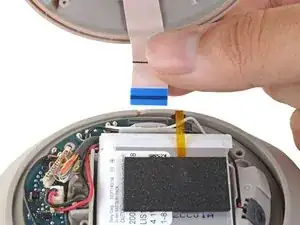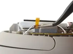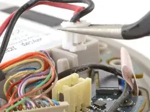 Используйте пинцет, чтобы потянуть вверх за гибкий шлейф термодатчика и отсоединить его от основной платы.