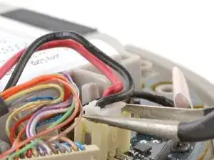 Предупреждение: Со временем этот разъём может стать хрупким. Действуйте медленно и держите почти белый разъём у платы во время работы. Не прикладывайте чрезмерную силу — вы рискуете вырвать разъём с платы и повредить хрупкие паяные контакты.