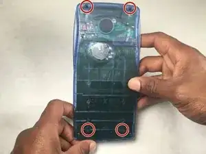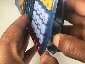 С помощью инструмента для вскрытия iFixit приподнимите три защелки на верхней и нижней частях калькулятора.