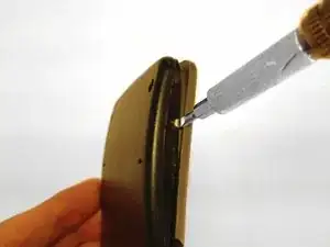 Вставьте плоскую отвертку в одну сторону, где зазор расширился.