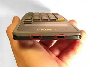 Найдите два выреза в верхней части калькулятора.
