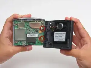 Осторожно отделите заднюю крышку от передней. Не тяните слишком сильно, так как есть два набора проводов, соединяющих устройство.