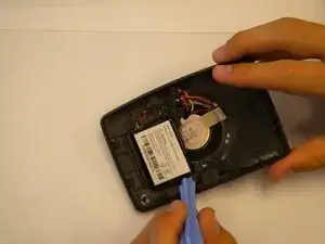 Батарея удерживается с помощью сильного клея, поэтому может потребоваться приложить силу. Работайте медленно и осторожно, чтобы