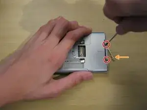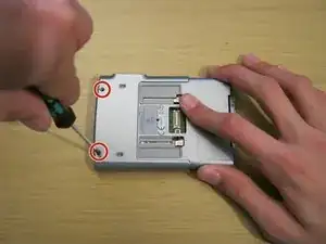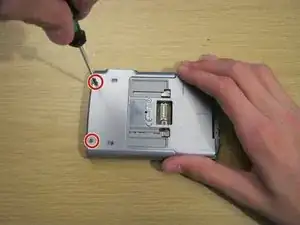 Снимите два винта Phillips #00 на задней стороне устройства.
