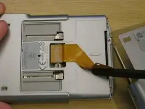 Будьте осторожны — она всё ещё соединена кабелем кнопок. Отделяйте кабель от устройства аккуратно лопаткой — он приклеен небольшой порцией клея.