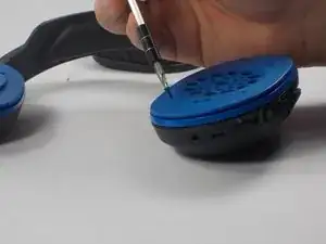С помощью отвертки Phillips #1 удалите четыре крепежных винта, удерживающих синюю пластиковую опору динамика.