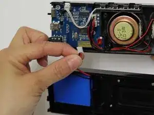 Отсоедините пластиковую решётку динамика с передней и задней стороны. Затем сдвиньте крышку, чтобы снять её с корпуса устройства.