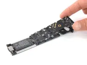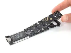 Поднимите плату и отведите её от аккумулятора, чтобы снять.