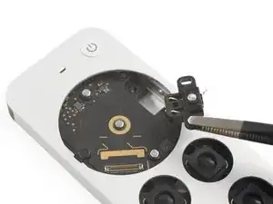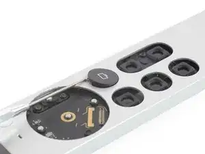 Используйте зонд, чтобы поддеть кнопку воспроизведения/паузы и отщёлкнуть оставшиеся пластиковые защёлки.