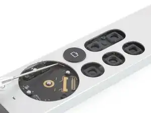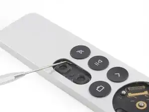 Используйте острый конец лопатки или пинцет, чтобы приподнять кнопку Siri и вынуть её из пульта.