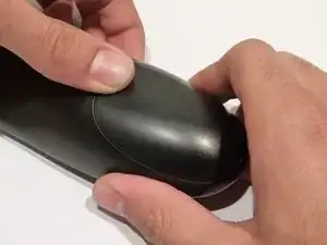 Положите палец на верхнюю часть крышки в углубление. Удерживая пульт другой рукой, сильно нажмите вниз, чтобы ослабить крышку.