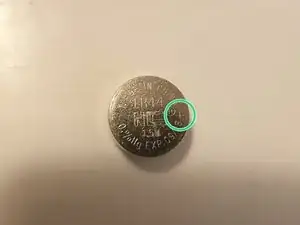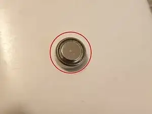 Установите новую батарейку в отсек. Убедитесь, что положительный полюс (со надписью) направлен вверх...
