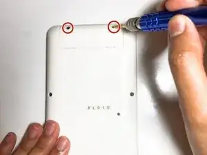 Отвинтите два винта, удерживающие крышку отсека батарейки, крестовой отверткой Tri-point #000.