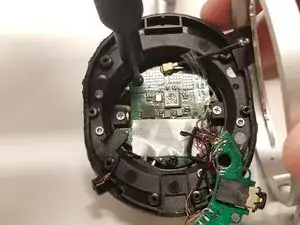 Удалите четыре винта по 5 мм с наушника с помощью отвертки типа Y1 Triwing.