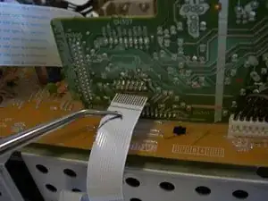 Пальцами или пинцетом поднимите указанные защёлки, пока фиксация шнура не будет выглядеть как на последней фотографии.