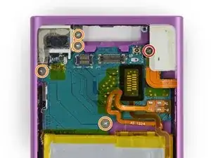 Выкрутите четыре винта Phillips #000 из разъёма Lightning и материнской платы.