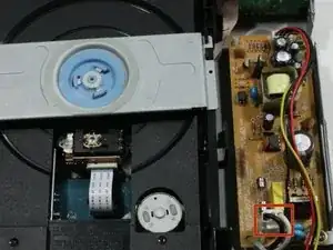 Сориентируйте устройство, чтобы найти плату блока питания в правом нижнем углу. Используйте плоскогубцы, чтобы достать белый разъем из плиты блока питания.