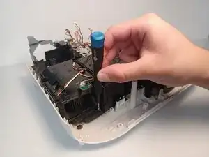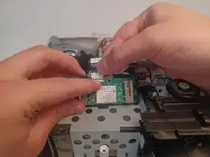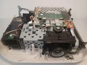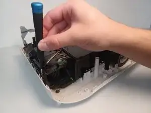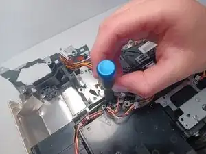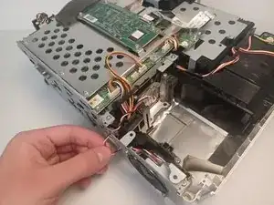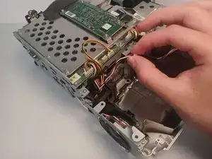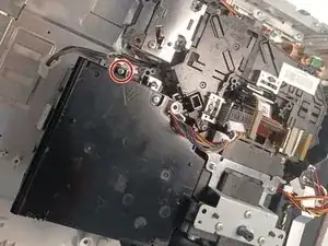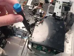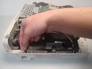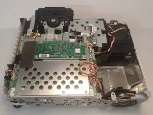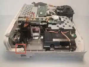 Выкрутите винт Phillips #1 длиной 9,5 мм, расположенный за блоком питания.