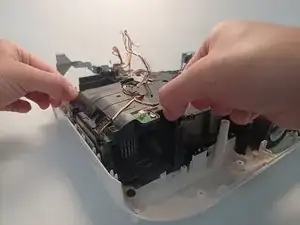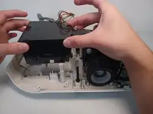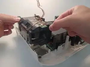 Аккуратно приподнимите узел вентилятора вверх, чтобы извлечь его из проектора.