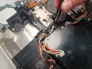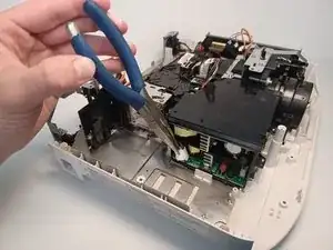 Используя плоскогубцы с тонкими губками, отсоедините первый белый кабель от платы.