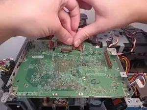 Отсоедините в общей сложности 10 соединений на материнской плате.