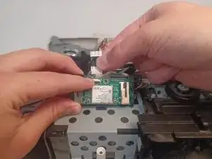 Нажмите на металлический разъём и потяните вверх, чтобы отсоединить оставшийся ленточный кабель.