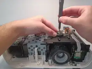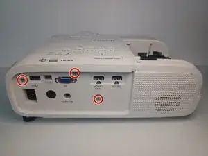 С задней стороны проектора снимите три винта длиной 6 мм с крестообразным шлицем Phillips #1.