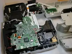 Следуйте этому руководству, чтобы удалить и заменить блок питания в Epson Powerlite 460.