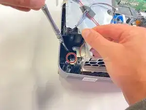 Открутите серебристый 10-мм винт с помощью отвёртки Phillips #2, чтобы снять чёрный провод.